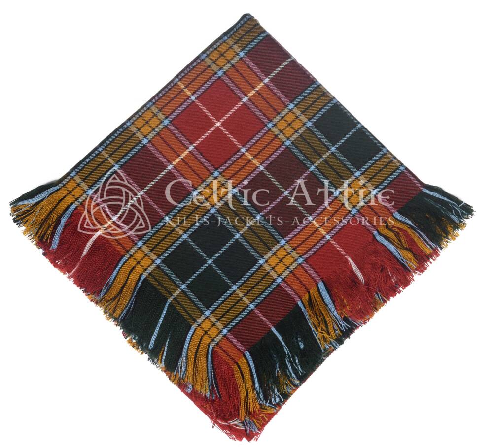 Our expert craftsmanship guarantees precise tartan alignment for a neat, polished finish. The hand-finished fringed edges maintain traditional Highland styling while adding a refined touch. Its generous size allows for a full, balanced drape when secured with a traditional plaid brooch. Pair it with a Buchanan Ancient tartan kilt, Prince Charlie jacket, sporran, and other Highland accessories for a fully authentic ensemble.