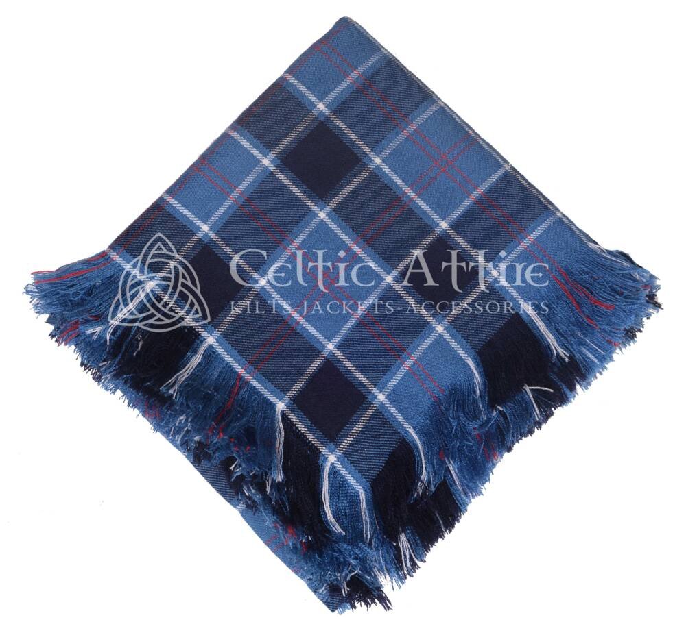 Expert craftsmanship ensures precise tartan alignment for a clean, professional finish. The hand-finished fringed edges preserve traditional Highland styling while adding subtle refinement. Its generous size allows for a full, balanced drape when secured with a traditional plaid brooch. Pair it with a US Navy tartan kilt, Prince Charlie jacket, sporran, and other Highland accessories for a complete and commanding outfit.