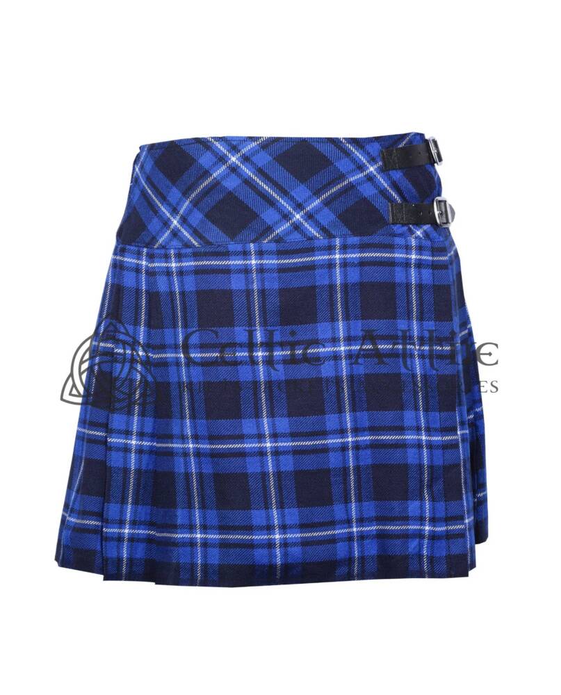 - Adorable mini blue tartan skirt for girls, blending classic elegance with youthful charm.