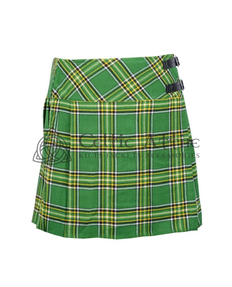 - Adorable mini greenish tartan skirt for girls, offering a unique twist on a classic style.