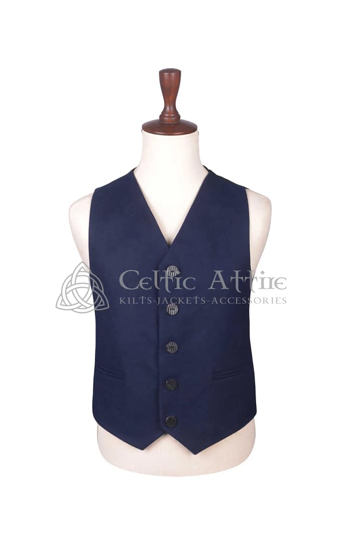 Subtle yet elegant details, such as crisp lapels, carefully selected buttons, and precise stitching, enhance the overall design. The Navy Blue Wool Argyll Jacket and Waistcoat can be customized with accessories like a sporran, tie, or kilt belt to reflect your personal style.