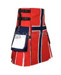 The Norwegian Flag Utility Kilt is a bold, functional garment. That displays the colors of the Norwegian flag – red, white, and blue. Ideal for those who want to showcase their Norwegian heritage, this kilt combines traditional style with modern practicality.