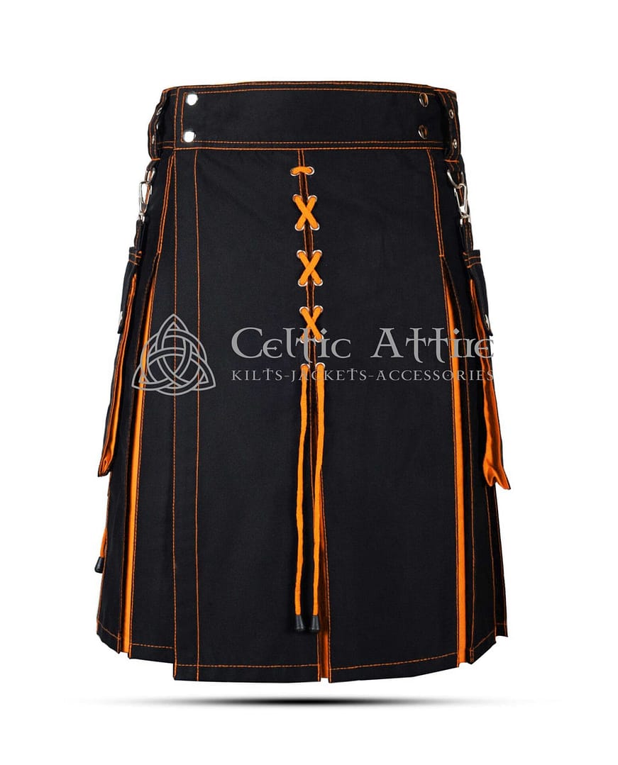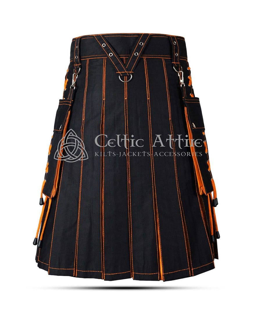 Brighten up your wardrobe with our Orange Hybrid Utility Kilt, where style meets functionality. Crafted from a durable cotton blend, this kilt is designed for those who want to make a bold statement while enjoying comfort and practicality. The vibrant orange color adds a lively touch, ensuring you stand out in any crowd.