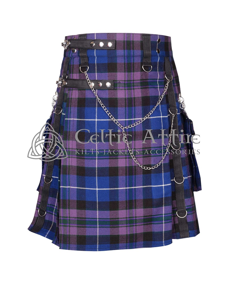 The Purple Plaid Gothic Kilt is a striking fusion of traditional Scottish heritage and contemporary gothic fashion. Crafted from high-quality materials, this kilt features a vibrant purple plaid pattern that adds a pop of color and intrigue to its design.