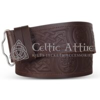 Celtic Knots Diamond Shape Embossed Brown Leather Kilt Belt