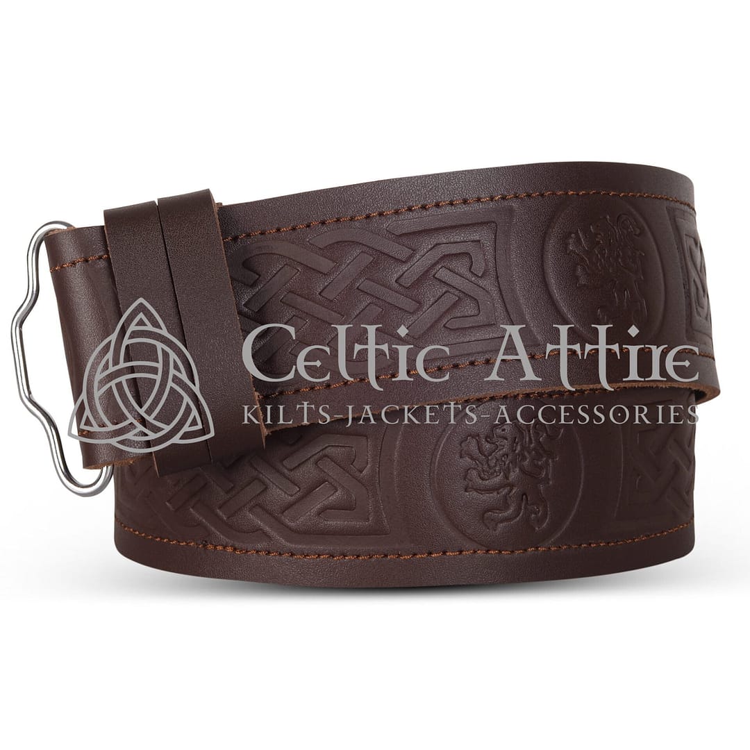 Rampant Lion Embossed Brown Leather Kilt Belt