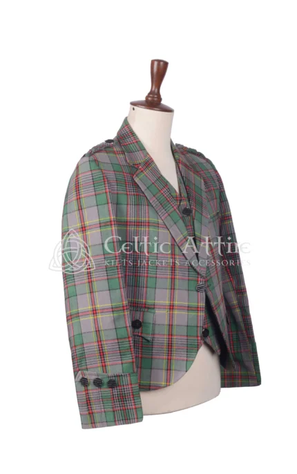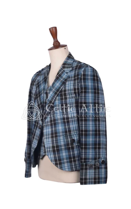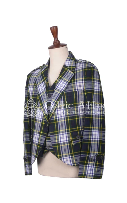 Together, the jacket and waistcoat create a striking combination that celebrates Scottish heritage and style. This outfit is perfect for anyone looking to make a statement at formal events or embrace their cultural roots.