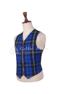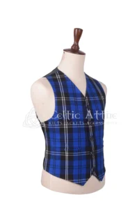 The waistcoat complements the jacket, crafted from the same Ramsay Blue tartan fabric. The waistcoat adds an extra layer of sophistication, ideal for a complete Highland look. Its sharp design ensures a smart, polished finish to your outfit.