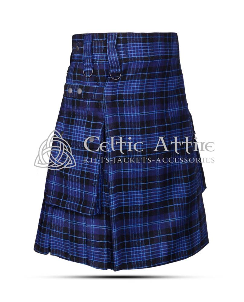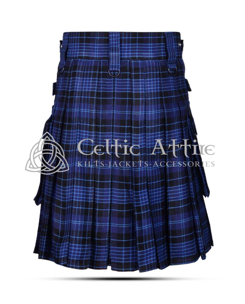 Whether you’re attending a festival, enjoying a day outdoors, or simply looking for a unique fashion statement, the Ramsey Blue Tartan Utility Kilt meets all your needs. Pair it with a simple shirt or a casual jacket for a complete look that showcases your style and heritage.