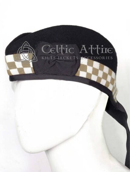 Black Khaki Diced Glengarry Bonnet Hat Scottish Military Piper Cap