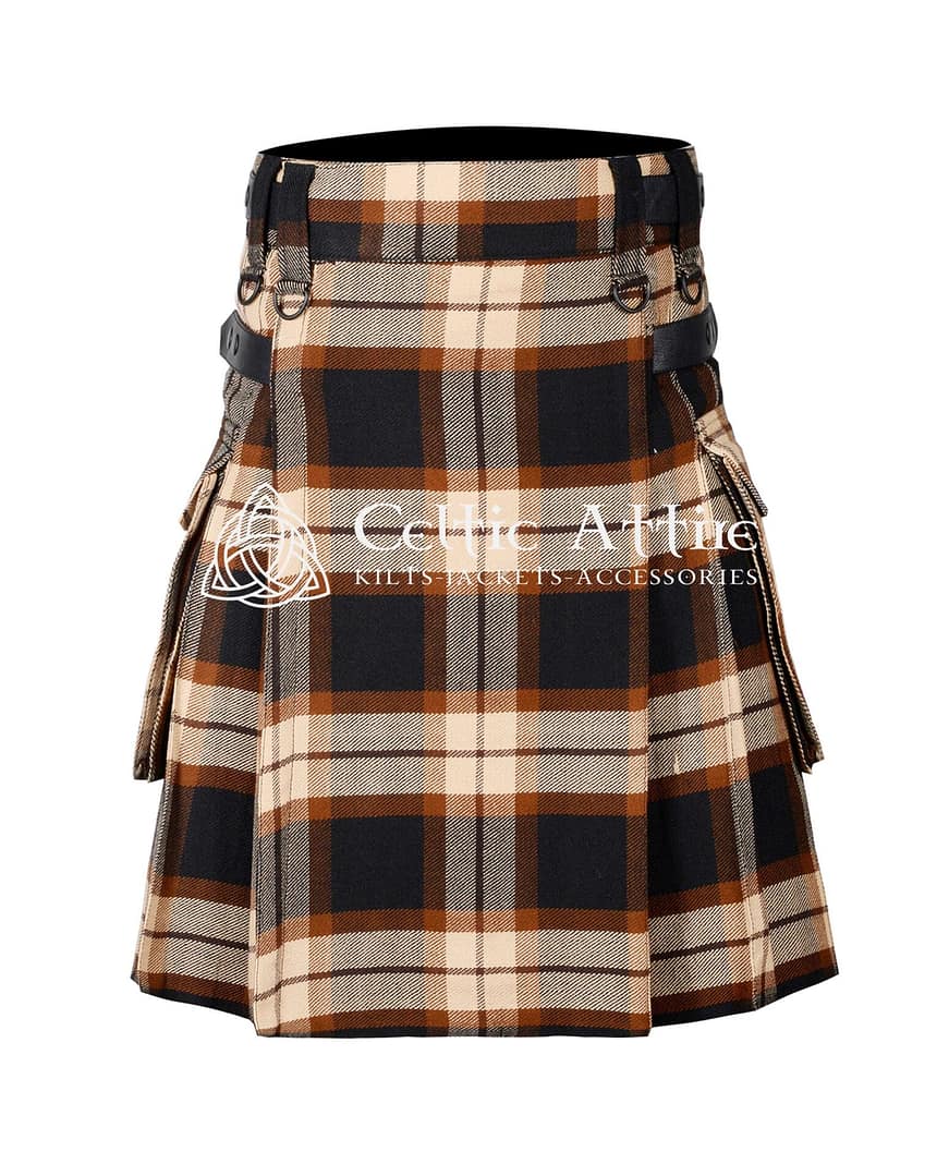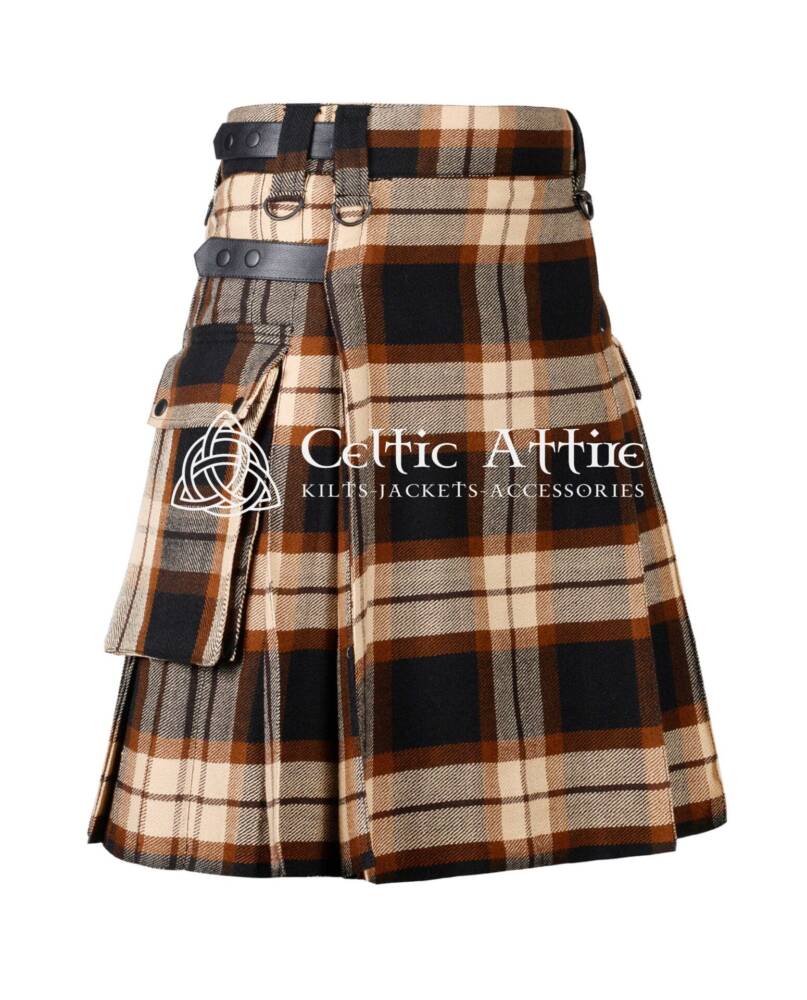 Functionality is a standout feature of the Rose Ancient Tartan Utility Kilt. It includes multiple spacious pockets, providing ample storage for essentials like your phone, wallet, and tools. These pockets integrate seamlessly into the kilt’s design, allowing you to carry your belongings securely while maintaining a stylish appearance.