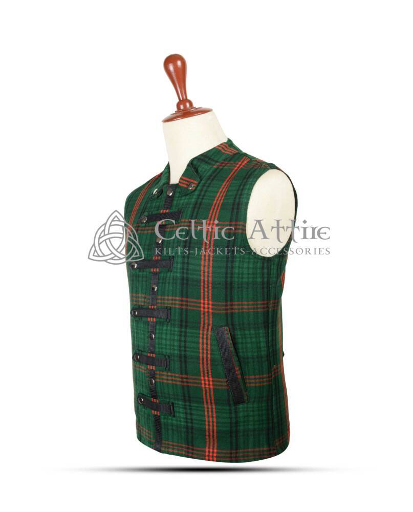 Crafted from premium Ross Hunting modern tartan fabric, this waistcoat showcases rich, vibrant colors and sharp check patterns with a modern twist. The tailored cut delivers a structured silhouette, while punk-inspired styling adds rebellious energy and individuality to your look.