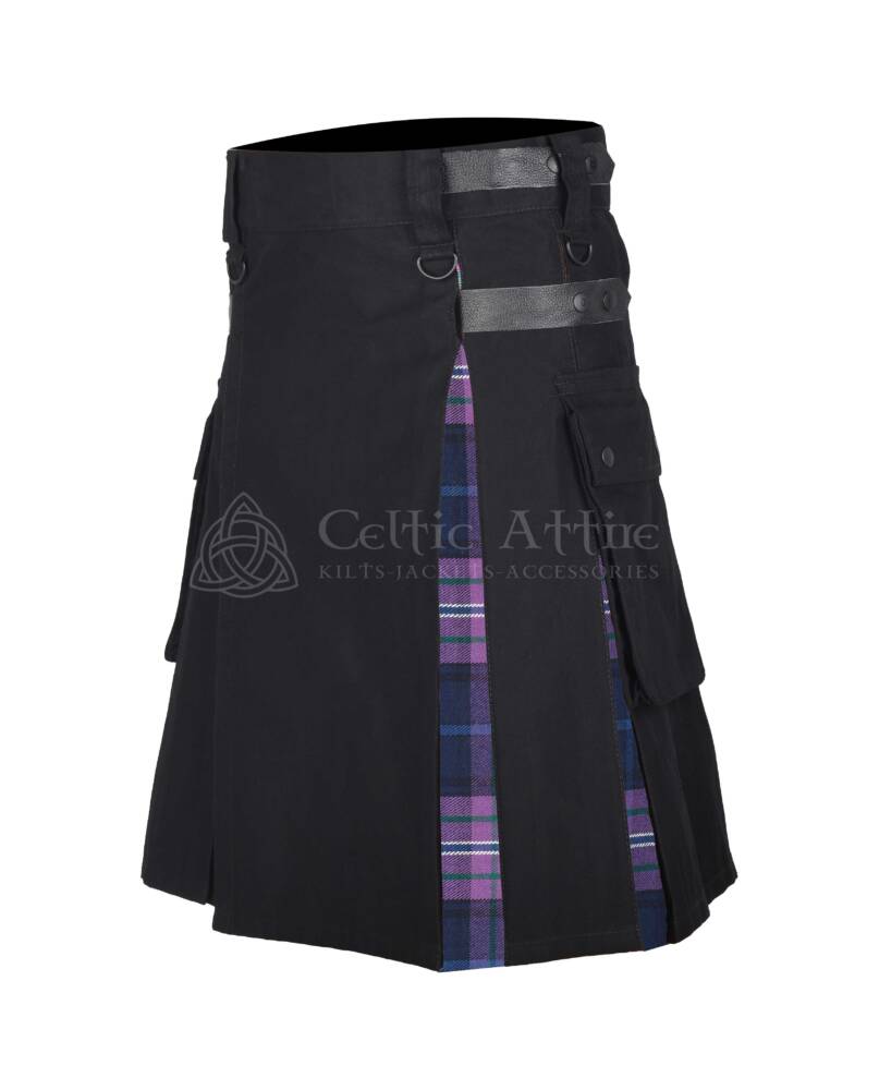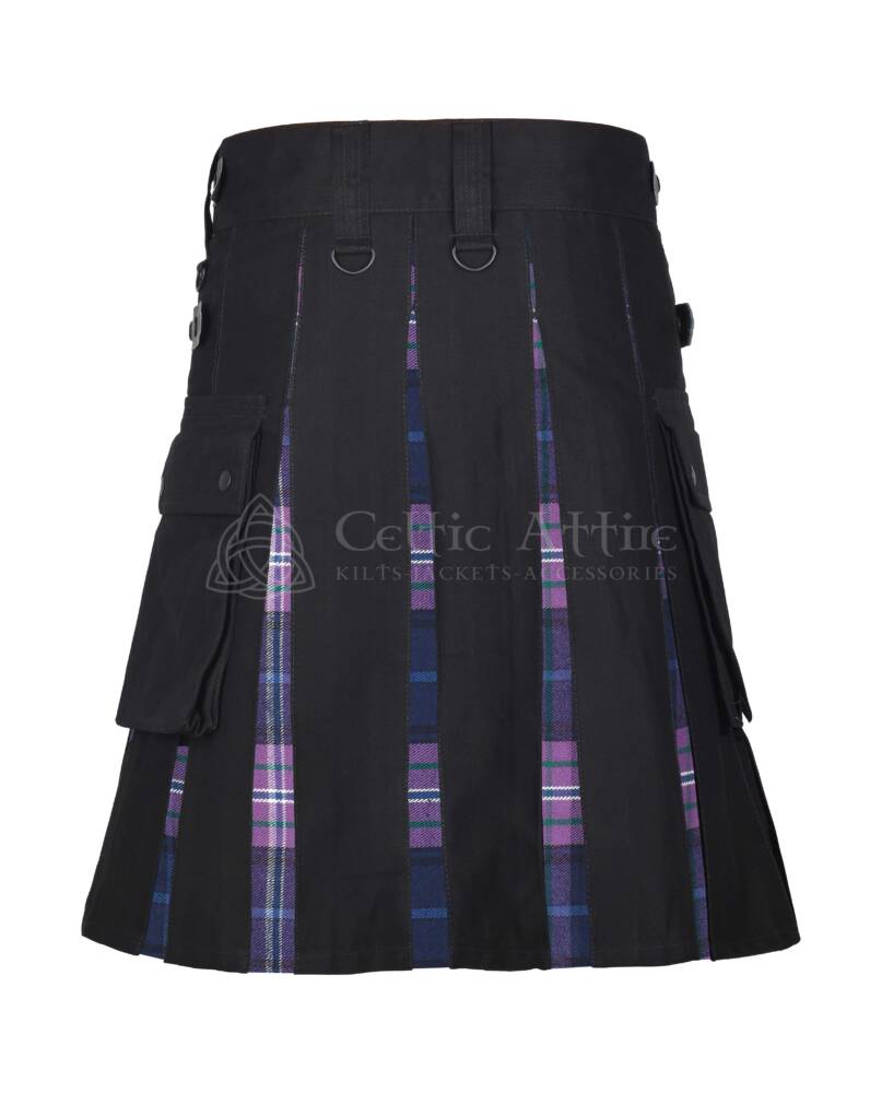 Scotland Forever Modern Tartan Black Cotton Hybrid Utility Kilt