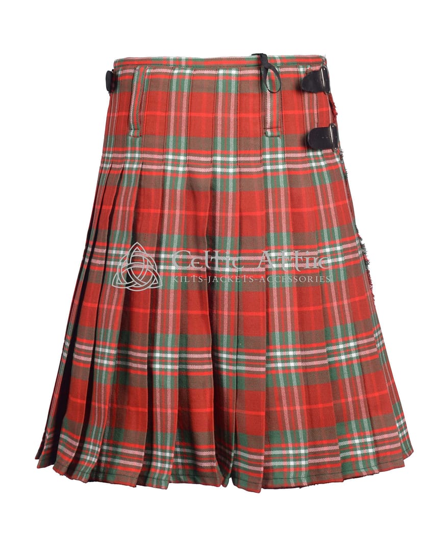 Designed for comfort and durability, this kilt features crisp knife pleats at the back for structure and movement. Two adjustable leather straps with rust-free metal buckles ensure a secure, personalized fit. Whether you’re attending a wedding, performing at a Highland event, or simply expressing your cultural pride, this kilt delivers a look that’s both striking and respectful of tradition.
