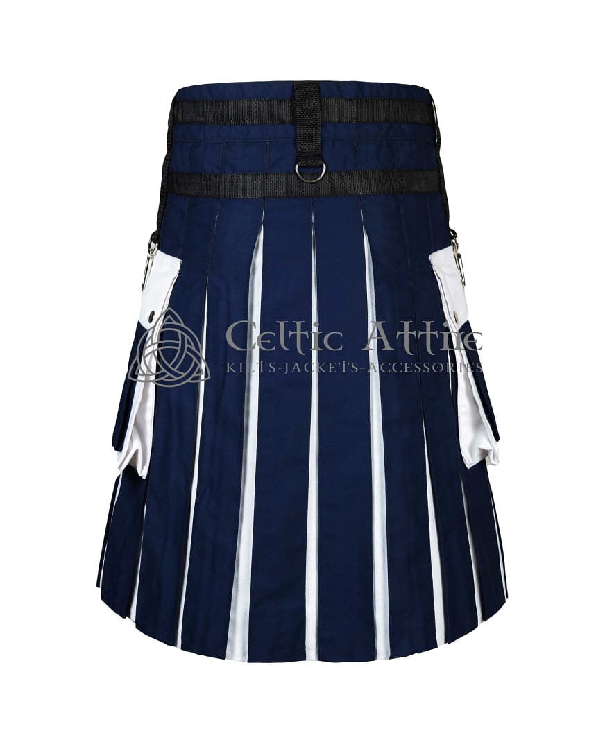 The Scottish Flag Utility Kilt is the perfect combination of tradition and functionality. Featuring the bold blue and white colors of the Scottish flag, this kilt lets you wear your heritage with pride while enjoying the comfort and practicality of a modern design.