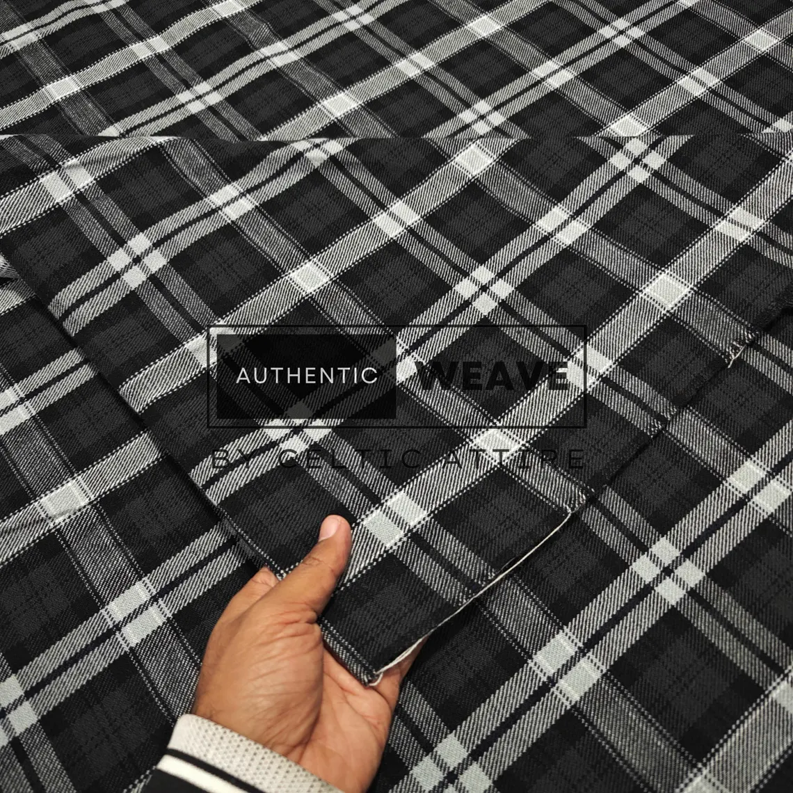 Scottish National Black is a Black – Gray based tartan. It’s a version of Scottish National Statdard tartan. Anyone who wants to celebrate the brave history and heritage of scotland can wear and use this tartan irrespective of their clan roots.
