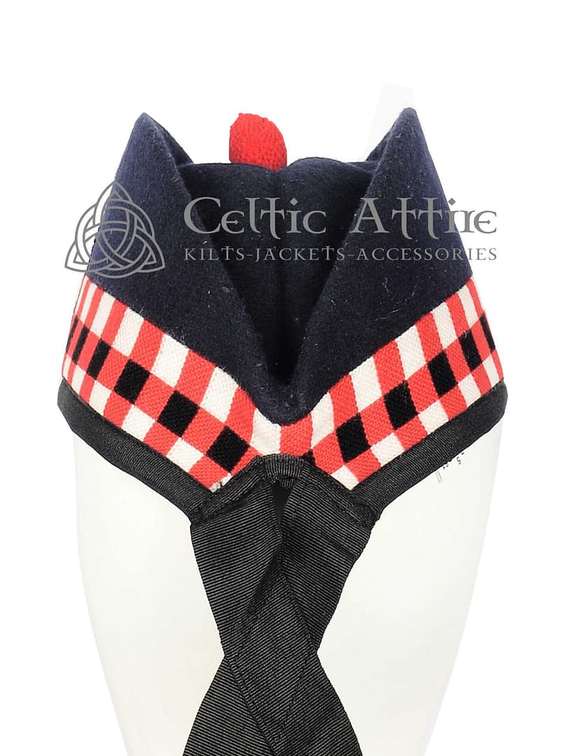 Seaforth Highlanders Glengarry Bonnet has dark blue Glengarry with red , white and very dark green dice with a red toorie. Celtic Attire offers the widest range of Scottish Balmoral Bonnets, Glengarry Hats, Irish Caubeen Caps, and Tammie Hats Here.