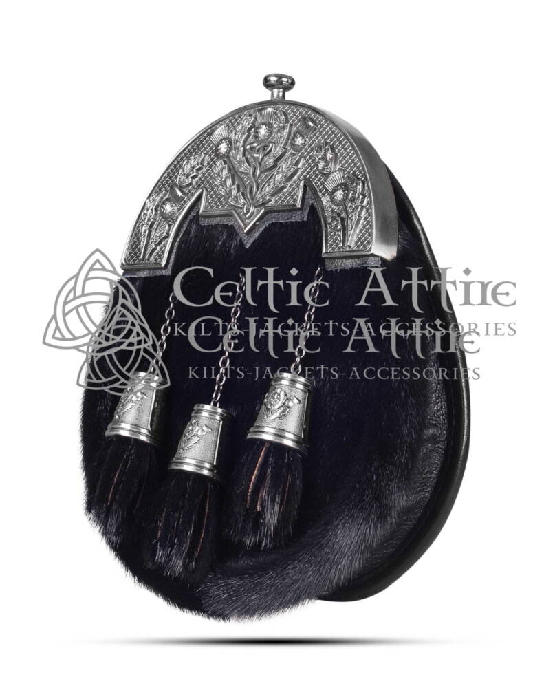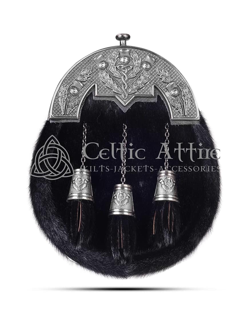 Black Seal Fur Antique Thistle Cantle Full Dress Sporran