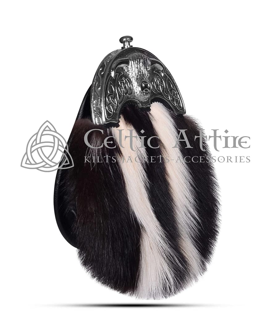 Skunk Fur Full Dress Sporran Silver Highland Cow Cantle