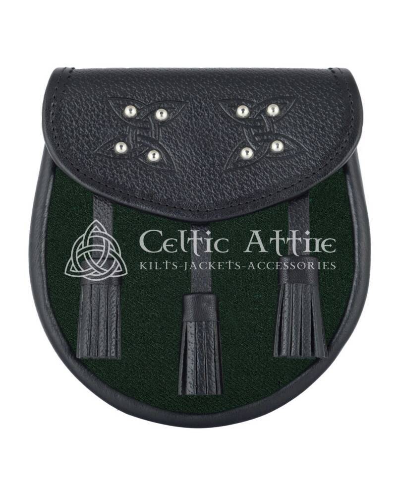 Add the Solid Green Tartan Sporran to your wardrobe for a refined accessory that balances practicality, subtlety, and Scottish charm in one elegant package.