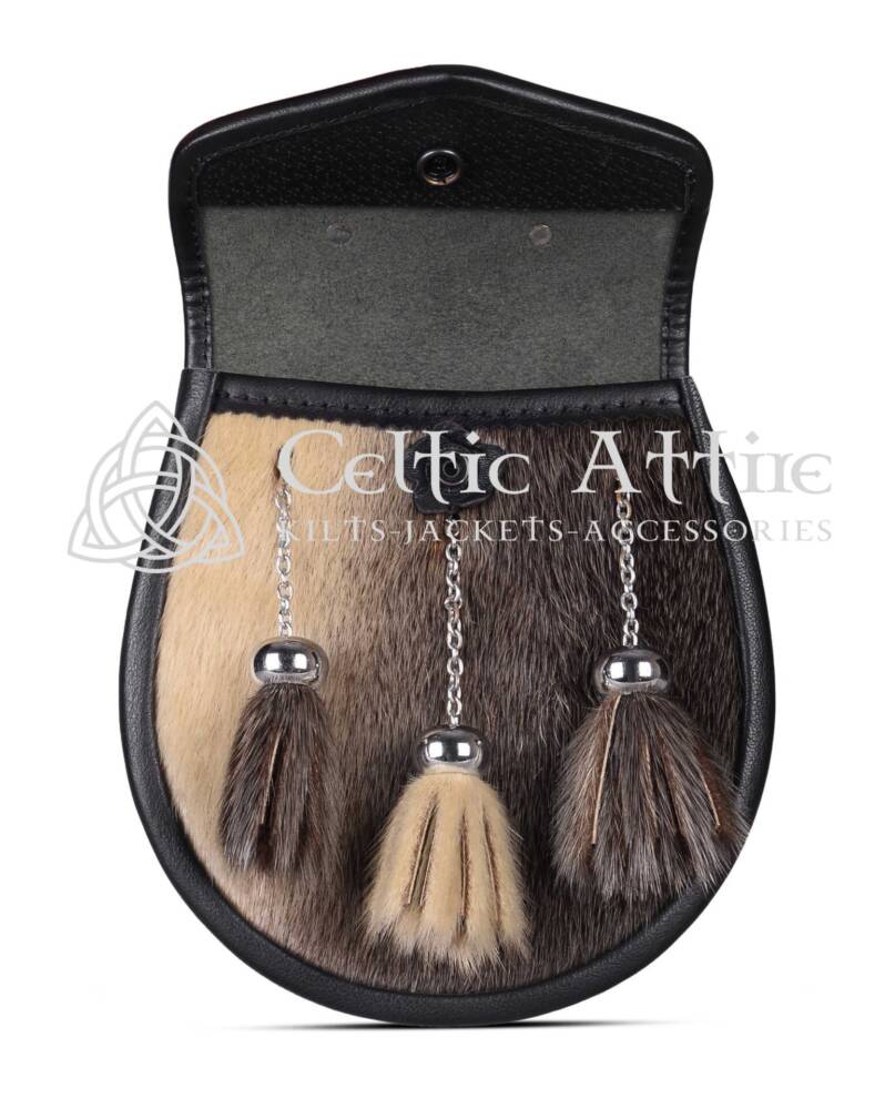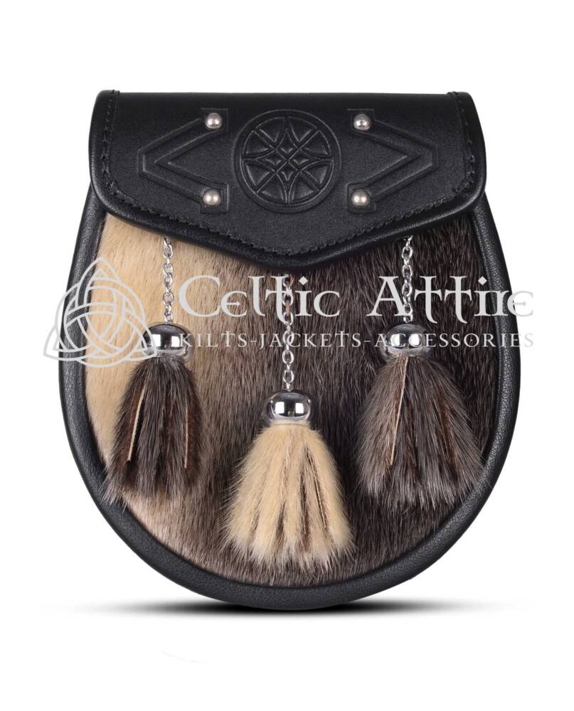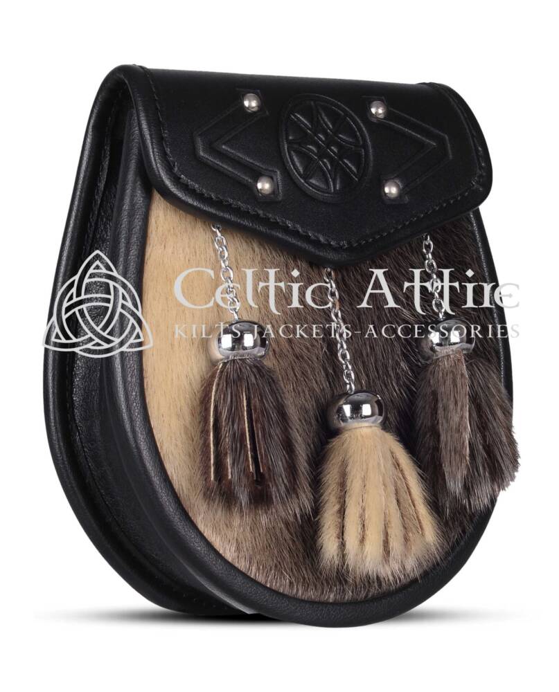 Elevate your Scottish attire with the Real Leather Scottish Semi Dress Seal Fur Scottish Sporran, a perfect blend of elegance and tradition. Crafted from luxurious two-tone seal fur, this sporran offers a soft and plush texture that enhances the overall sophistication of your ensemble. The striking contrast of the two-tone seal fur against the black leather body creates a visually appealing accessory that complements any kilt. Adorned with ornate chrome 3 tassel balls, it’s elegance strikes as a symbol of Scottish pride and resilience. This sporran is not only stylish but also rich in cultural significance. Semi Dress Sporrans are popular as you can wear them at formal or informal Scottish events or even as daily wear.