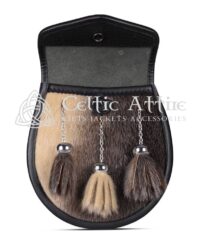 Designed for versatility, the sporran features three decorative seal fur tassels with metal chains, adding movement and flair to your look. Measuring 7″ x 9″, it provides ample space for your essentials while maintaining a compact silhouette. Whether you’re attending a wedding, a festive celebration, or a formal event, the Seal Fur Scottish Sporran is the ideal accessory to complete your outfit with a touch of Scottish charm and elegance.