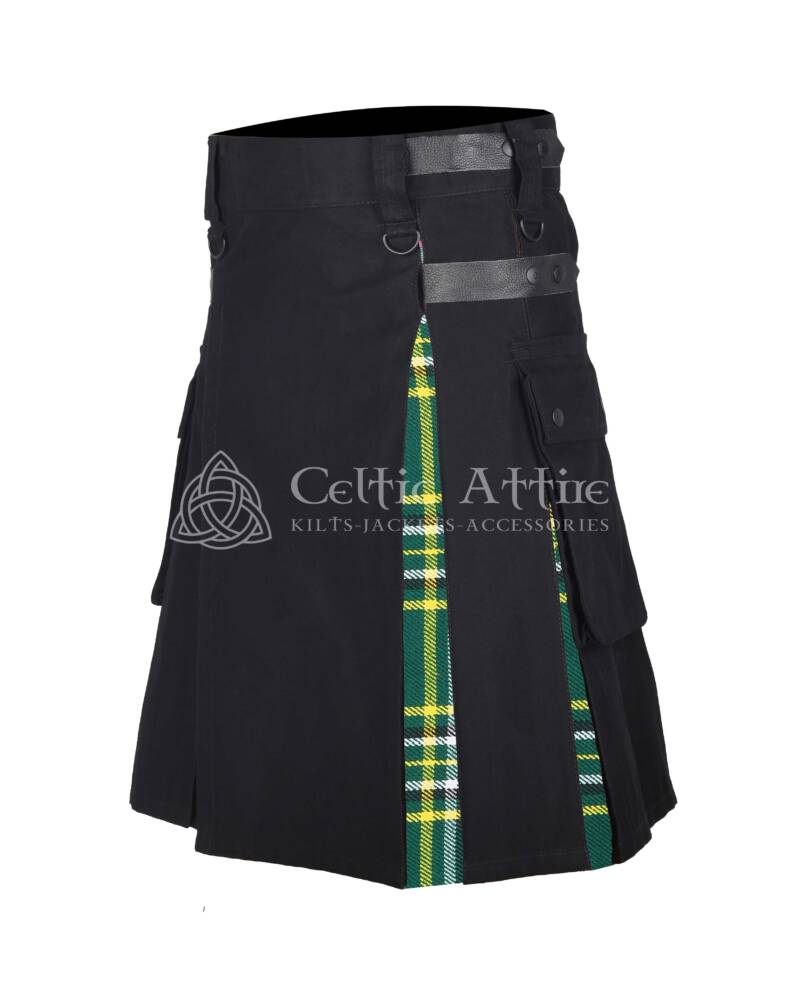 St Patrick Tartan Black Cotton Hybrid Utility Kilt