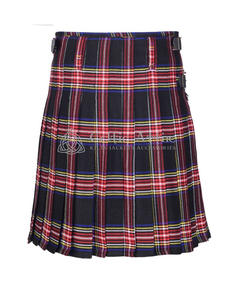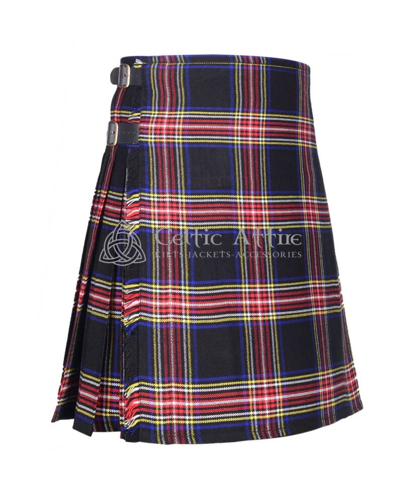 Crafted from premium acrylic wool, the Stewart Black Tartan Kilt offers a lightweight yet sturdy feel that mimics the texture of traditional wool. The bold design features deep black, green, and blue tones, with subtle touches of red—perfectly representing the Stewart clan’s proud legacy. Whether you’re attending a wedding, a formal event, or a Highland gathering, this kilt adds a touch of elegance and distinction to any occasion.