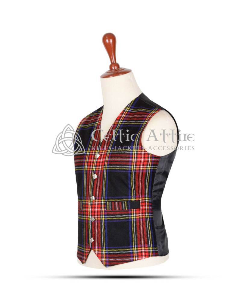 Introducing the Stewart Black Tartan Waistcoat, a timeless piece that embodies elegance and sophistication. Crafted from high-quality fabric, this waistcoat features the classic Stewart Black tartan, showcasing a striking pattern of rich blacks and deep greens, accented with bold reds. It’s the perfect addition for anyone looking to embrace Scottish heritage with a modern twist.