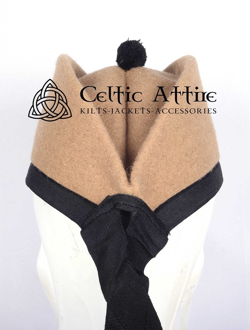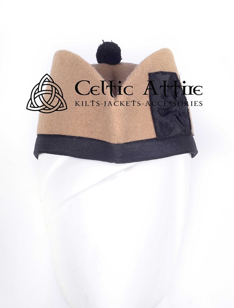 Tan Wool Glengarry Bonnet Scottish Military Bagpiper Hat