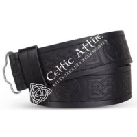 Celtic Knots Vertical Embossed Black Leather Kilt Belt