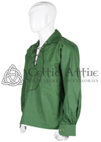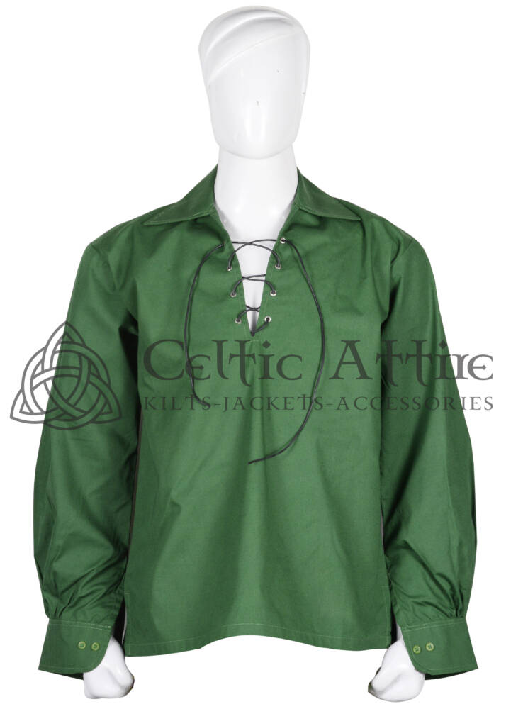The traditional Scottish Ghillie Jacobite kilt shirt, crafted entirely from 100% cotton, embodies the essence of Highland heritage and style. With its characteristic lace-up front and loose, comfortable fit, this shirt epitomizes the timeless elegance of Scottish attire. Its design, rooted in centuries of tradition, evokes images of rugged landscapes, ancient clans, and the spirit of the Scottish Highlands. Made from breathable cotton fabric, it offers both durability and comfort, ideal for wearing in a variety of settings, from formal gatherings to casual outings.