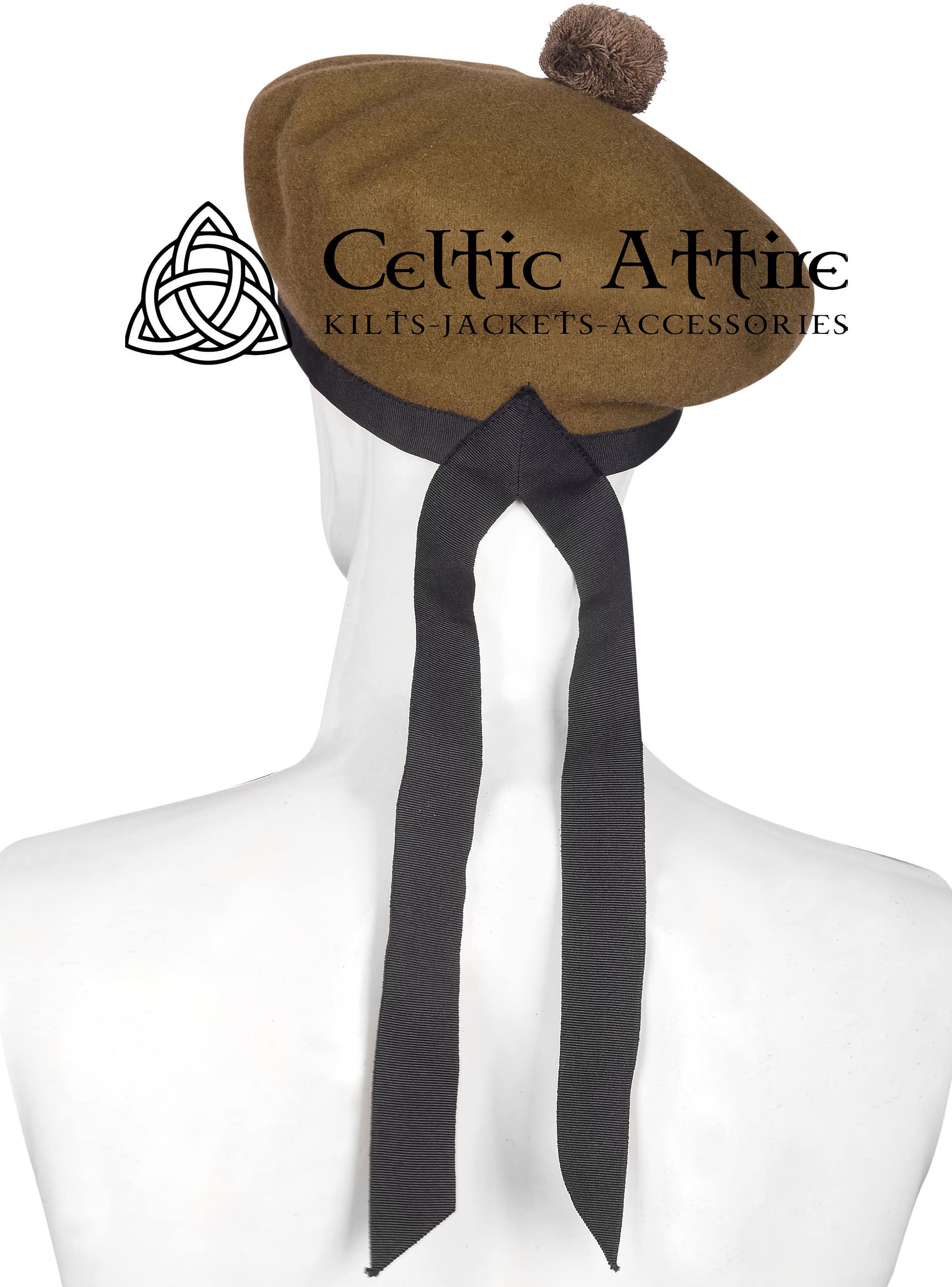 Brown Wool Scottish Barret Balmoral Hat Military Bonnet