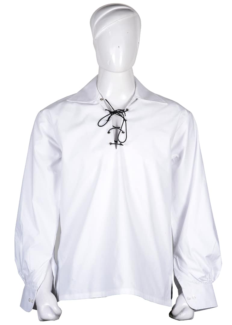 The traditional Scottish Ghillie Jacobite kilt shirt, crafted entirely from 100% cotton, embodies the essence of Highland heritage and style. With its characteristic lace-up front and loose, comfortable fit, this shirt epitomizes the timeless elegance of Scottish attire. Its design, rooted in centuries of tradition, evokes images of rugged landscapes, ancient clans, and the spirit of the Scottish Highlands. Made from breathable cotton fabric, it offers both durability and comfort, ideal for wearing in a variety of settings, from formal gatherings to casual outings.