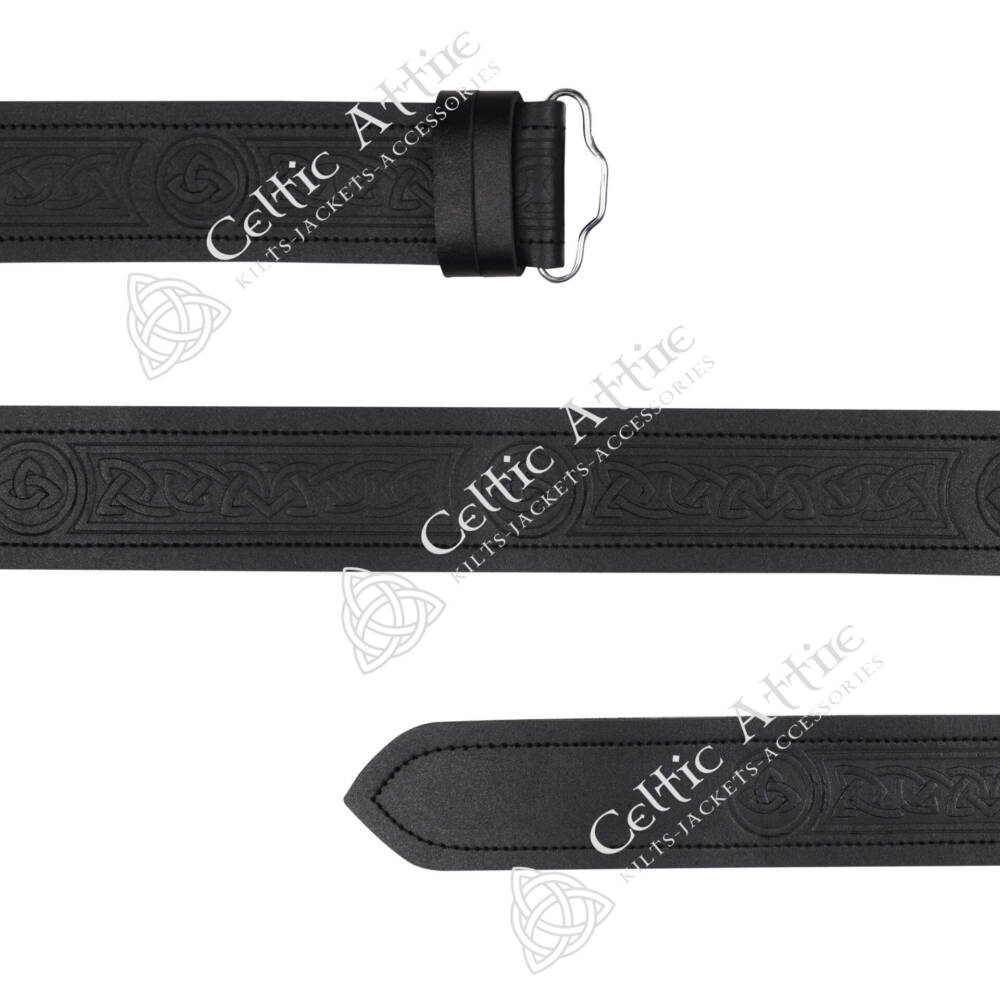 Celtic Knots Vertical Embossed Black Leather Kilt Belt