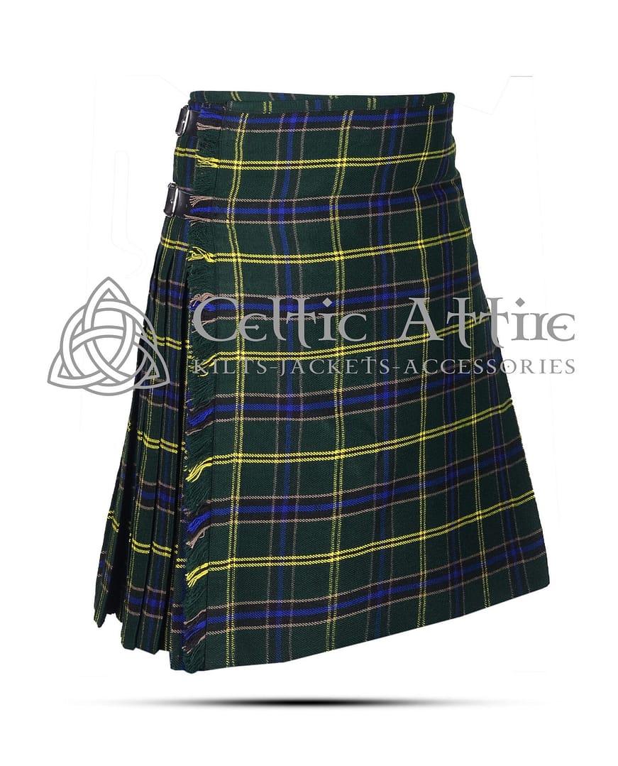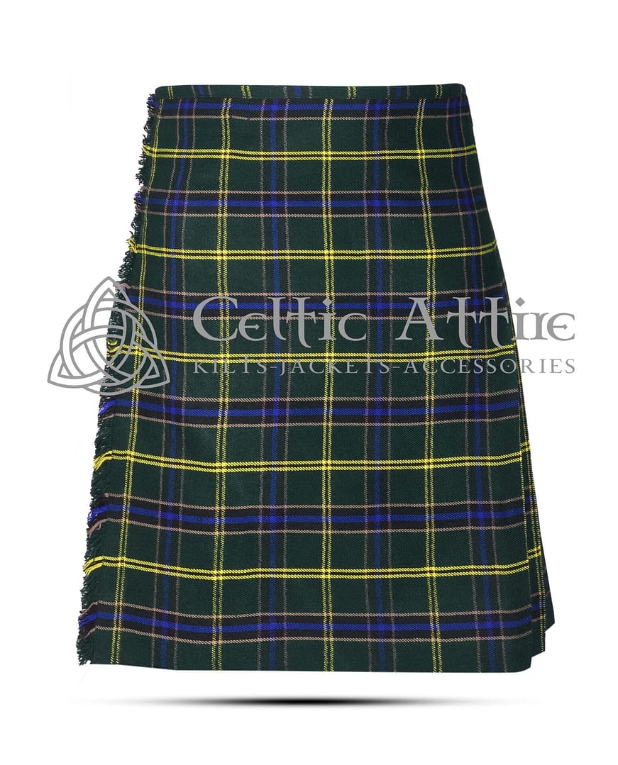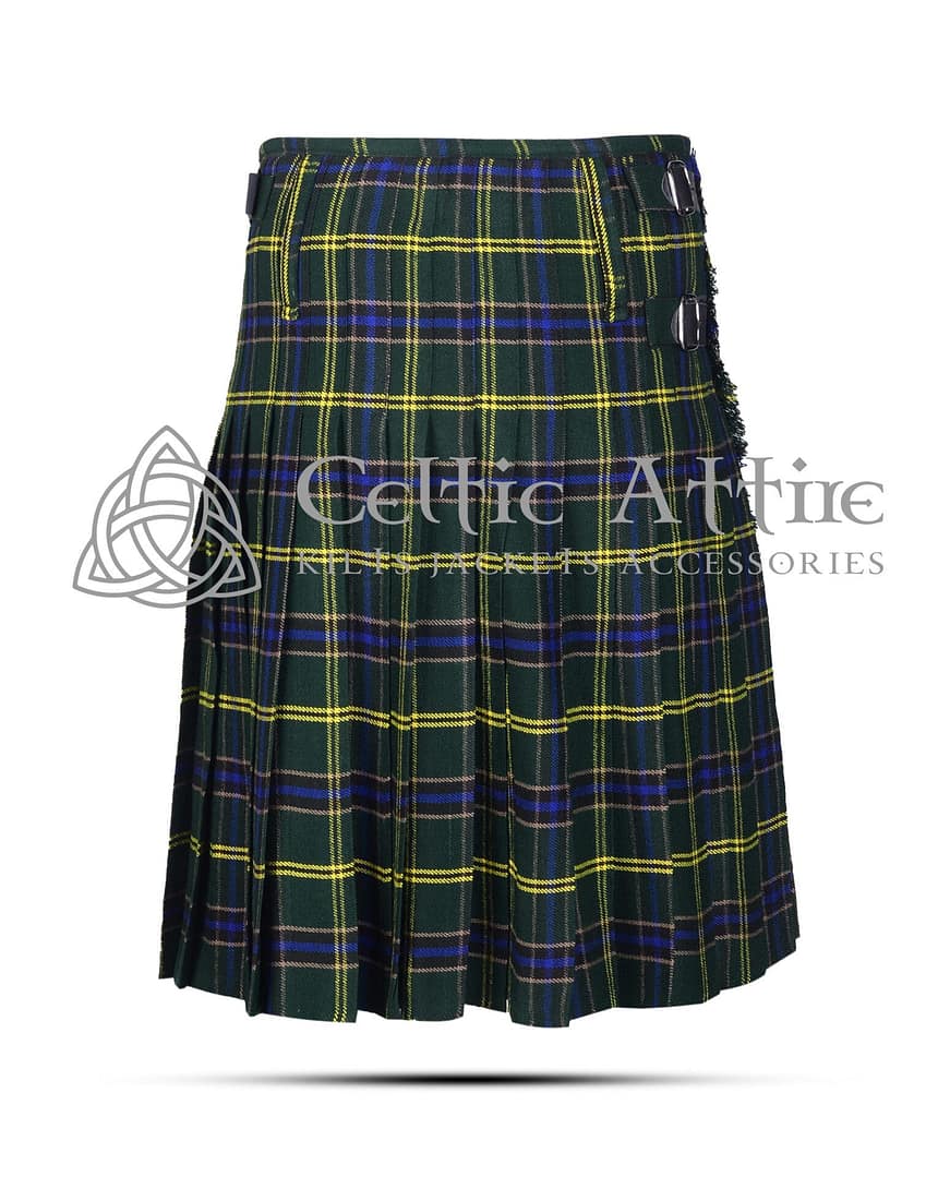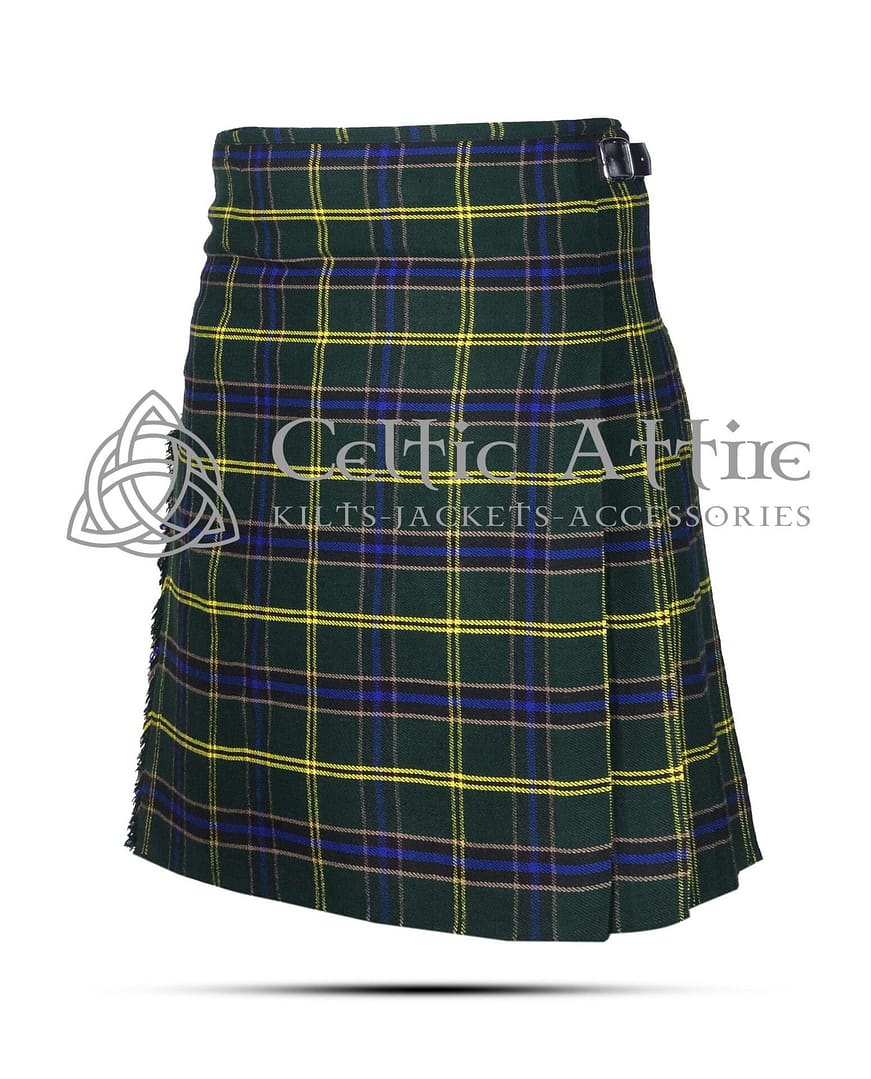 The US Army Tartan Kilt is a proud representation of military heritage and tradition. This kilt features a striking tartan pattern with dominant dark green complemented by black, blue, and yellow stripes. It embodies the spirit of the U.S. Army, showcasing honor and pride. Crafted from high-quality acrylic wool, this kilt ensures both comfort and durability, making it suitable for various occasions.