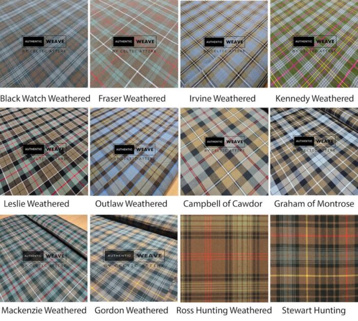 Celtic Attire offers the largest collection of Weathered Tartan Fabrics. You can even get your own family or Personal tartan fabric woven at a minimum quantity and reasonable costs.