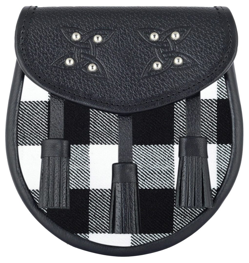 The White Black Rob Roy Tartan Sporran is a distinguished accessory that beautifully blends classic Scottish tradition with understated style. Inspired by the famous Rob Roy MacGregor clan tartan, this sporran is perfect for those seeking a sleek, versatile piece to complement their Highland attire.