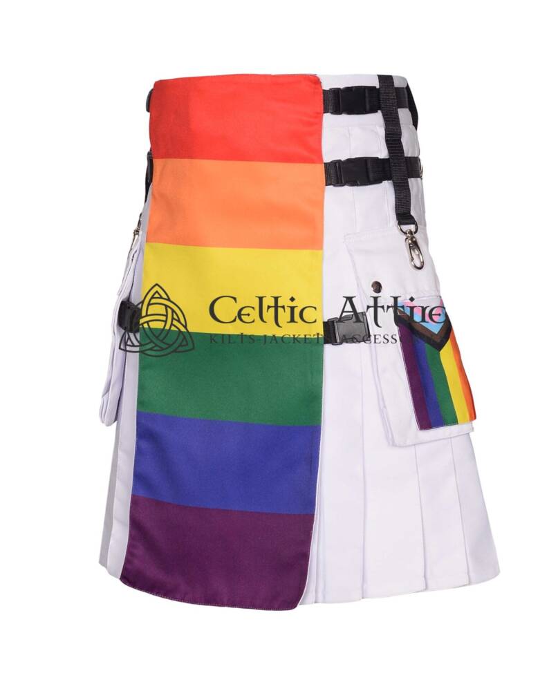 Introducing the LGBTQ Pride Flag Scottish Hybrid Utility Kilt, a remarkable garment that combines traditional Scottish design with vibrant expressions of identity and pride. This kilt is perfect for anyone looking to celebrate their uniqueness while embracing the rich cultural heritage of Scotland.