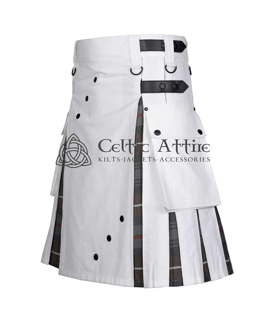 The versatility of the White Cotton Mackenzie Weathered Tartan Hybrid Kilt makes it suitable for various events. Whether you’re attending outdoor festivals, family gatherings, or casual outings, this kilt adapts effortlessly to your style. Pair it with a simple black or white t-shirt for a relaxed look, or dress it up with a stylish button-down shirt for more formal occasions. Its adaptable design ensures it fits seamlessly into any wardrobe.