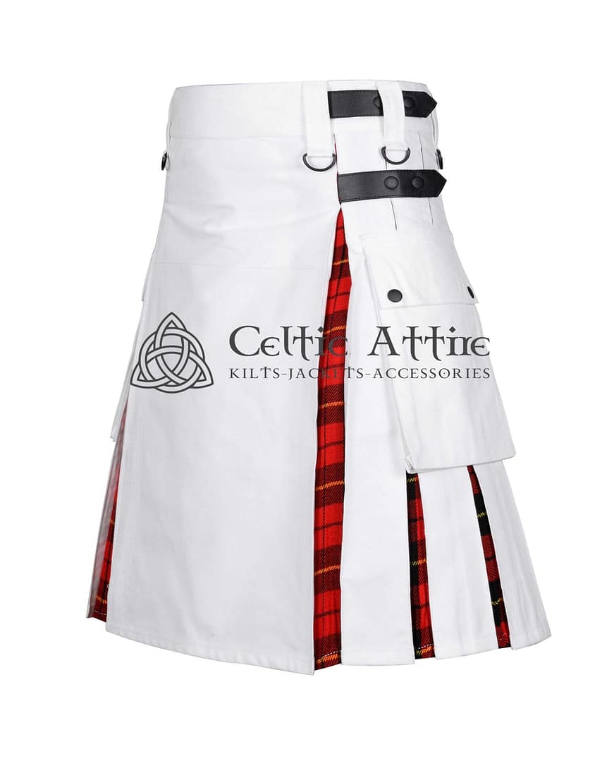Versatility is a key feature of the White Cotton Wallace Tartan Hybrid Utility Kilt. It’s suitable for a wide range of events, from outdoor festivals to family gatherings and casual outings. Pair it with a simple black or white t-shirt for a relaxed look, or dress it up with a stylish button-down shirt for more formal occasions. Its adaptable design ensures it fits seamlessly into any wardrobe.