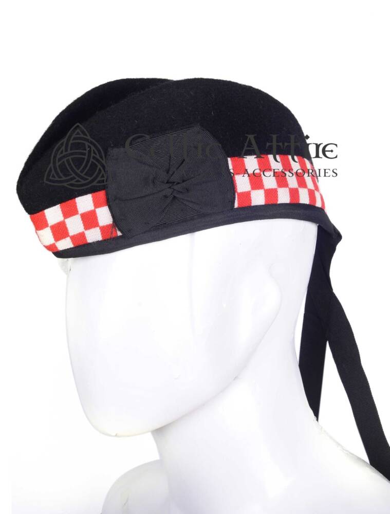 White Orange Diced Glengarry Black Wool Scottish Military Bonnet
