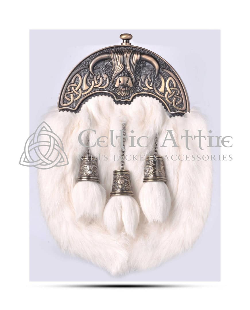 Brass Highland Cow White Rabbit Full Dress Sporran