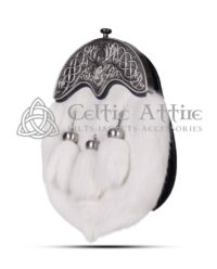 The Nickle Brushed Rabbit Fur Sporran is a stunning accessory that adds elegance to any Highland outfit. Made from high-quality white rabbit fur, this sporran features a beautifully crafted nickel-brushed stag head cantle, symbolizing strength and tradition. The soft texture and bright color of the fur create a luxurious appearance, perfect for formal occasions. This sporran is designed for both style and practicality. It provides ample storage space for your essentials, ensuring you have everything you need at hand.