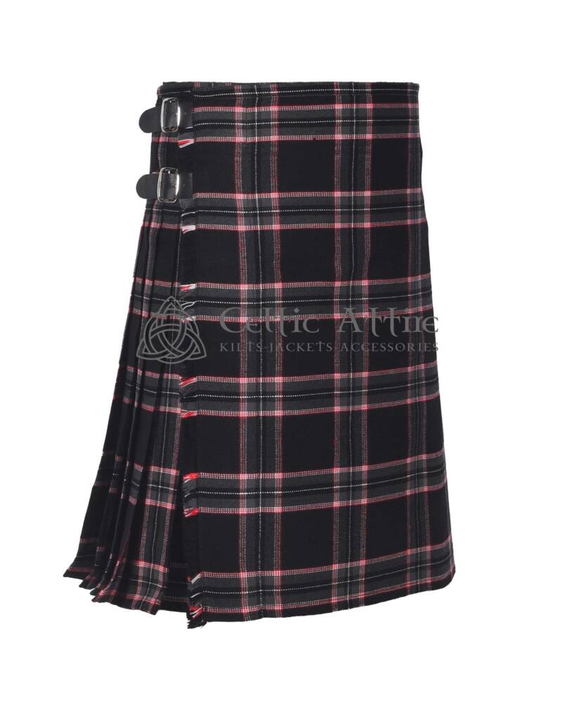 The kilt includes traditional knife pleats at the back, offering both structure and freedom of movement. Two adjustable leather straps with rust-free buckles provide a secure, custom fit, while wide belt loops allow for added accessories like a sporran, belt, or kilt pin—perfect for completing your look with authenticity.