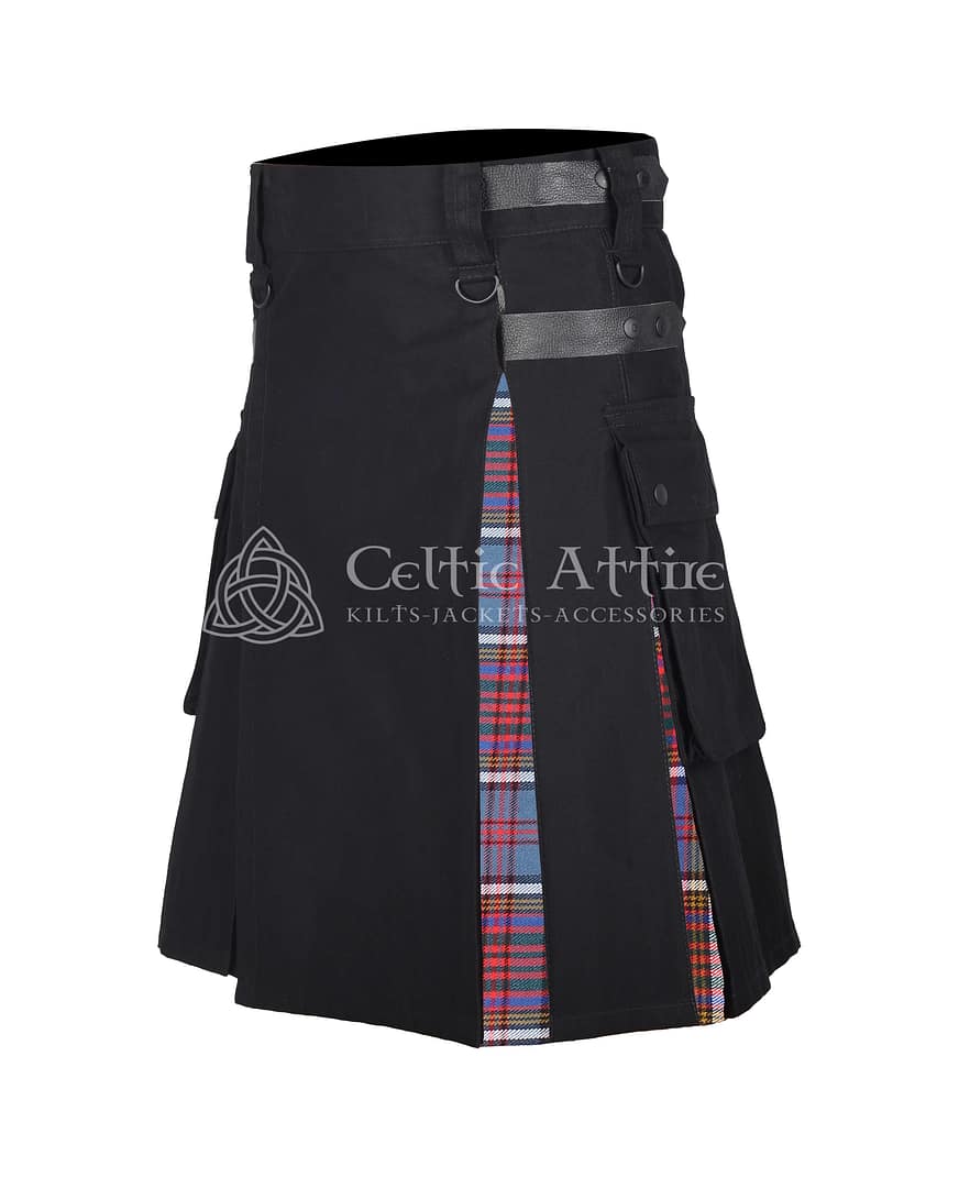 Abercrombie Modern Tartan Black Cotton Hybrid Utility Kilt