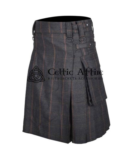 Charcoal Plaid Grey Tweed Wool Scottish Utility Kilt