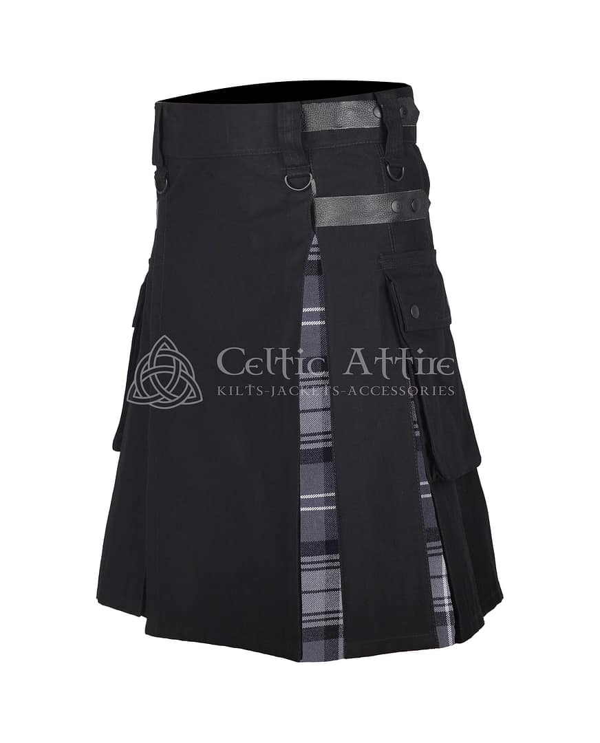 Hamilton Gray Tartan Black Cotton Hybrid Utility Kilt