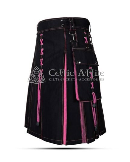 Pink and Black Cotton Hybrid Utility Kilt